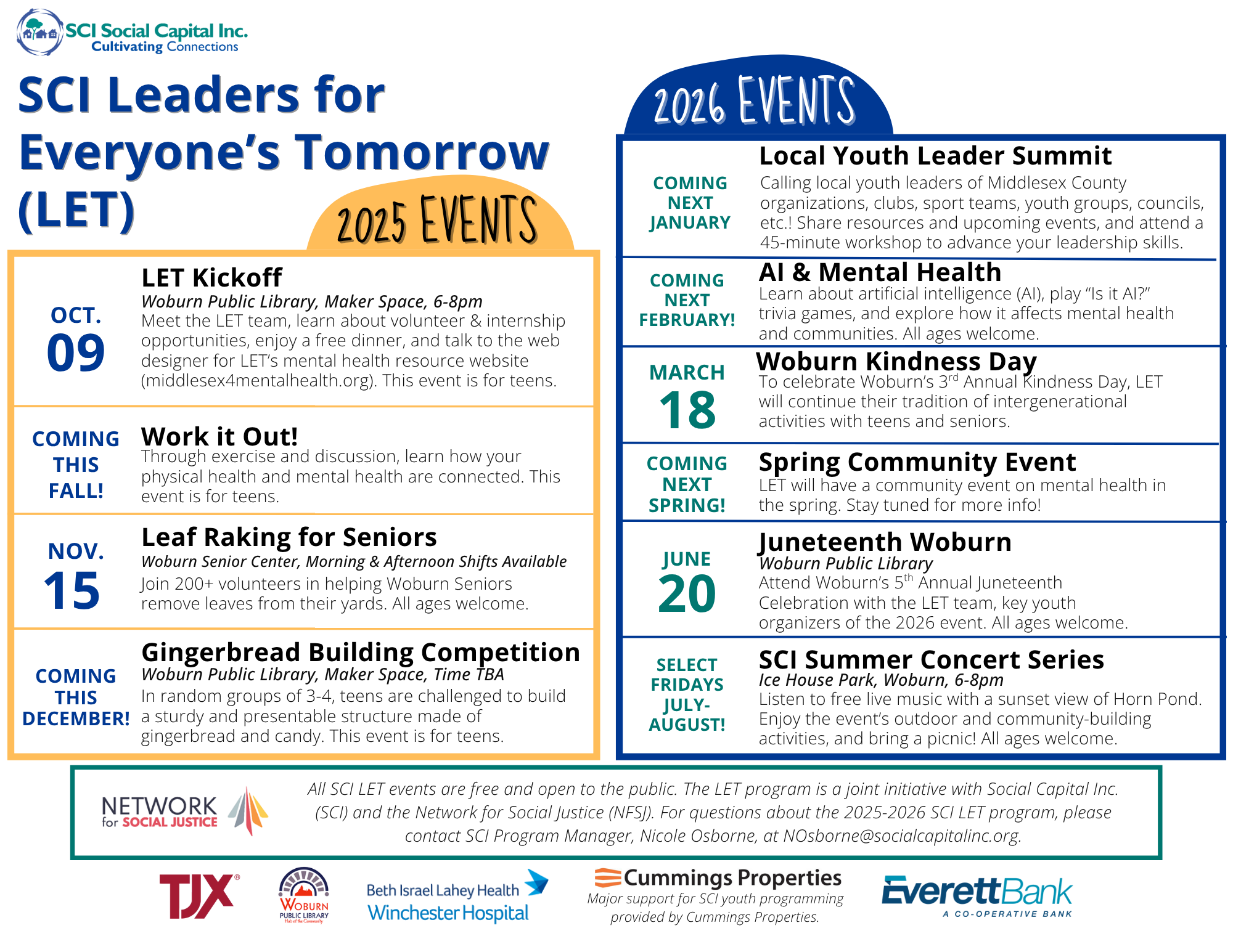 Major support for LET is provided by the Woburn Public Library Foundation. Additional support for LET is provided by The TJX Companies, Inc. and Winchester Hospital.